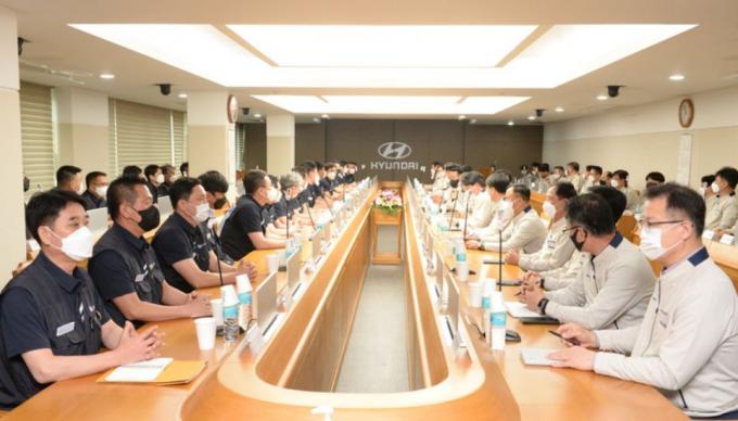 ▲ 현대자동차 노사가 지난 5월 10일 울산공장 본관에서 2022년도 임금협상 상견례를 하고 있다. [뉴시스]