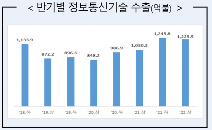14일 과학기술정보통신부와 산업통상자원부 발표에 따르면 올 상반기 ICT 수출은 지금까지 최고 기록이었던 2021년 상반기 1030억 달러도 경신하며 전체 수출 증가를 견인했다.
