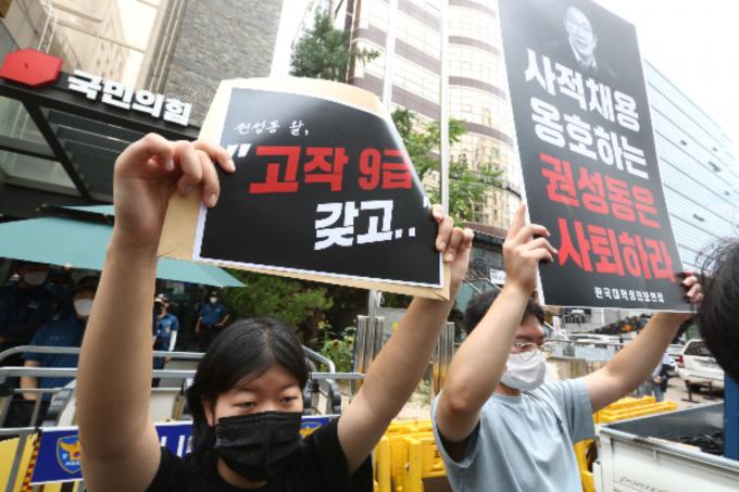 "고작 9급 갖고"?…성난 대학생들 "윤석열 퇴진! 권성동 사퇴!"