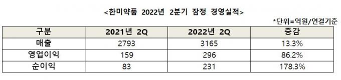한미약품, 2분기 대폭 성장…영업익 86%·순이익 178%↑