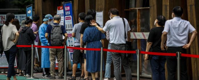 ▲ 지난 14일 서울 송파구보건소 선별진료소를 찾은 시민들이 검사를 받기 위해 기다리고 있다. [뉴시스]