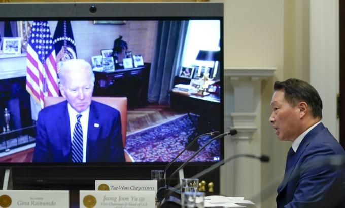 최태원 SK 회장은 26일(현지시간) 백악관 루즈벨트룸에서 미국에 대한 220억 달러 신규 투자 계획을 발표하면서, 빌앤멜린다 게이츠 재단 및 워싱턴대학과 협력해 "새로운 코로나19 백신을 개발하고 있다"는 뉴스를 조 바이든 대통령에게 전했다.