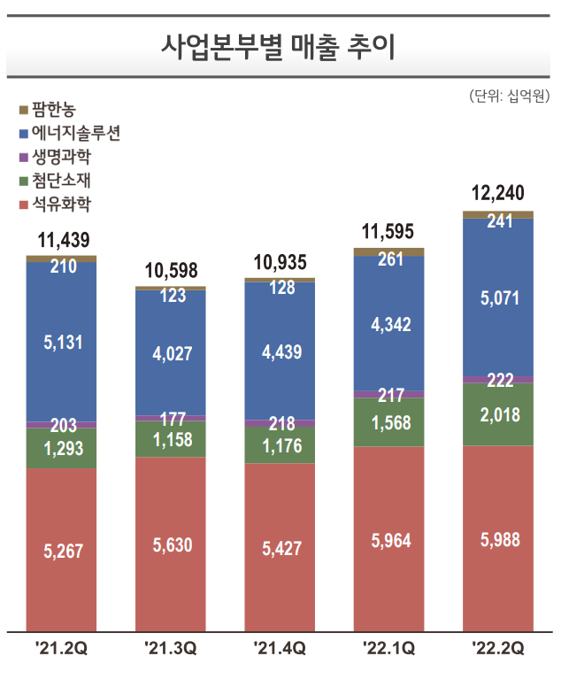 ▲LG화학 사업본부별 매출 추이 그래프. [LG화학 IR 자료 캡처]