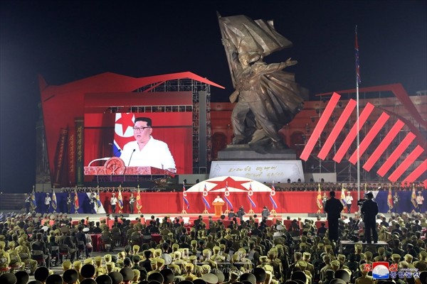 김 위원장은 이날 전승 69돌 기념행사 연설 중간에 "힘에 대한 비정상적인 과욕과신에 빠져 광기를 부리며 미국의 대조선 적대시정책 실행에 앞장서는 남조선 보수 '정권'과 호전광들에게도 엄중히 경고하고자 한다"며 이같이 비난했다.