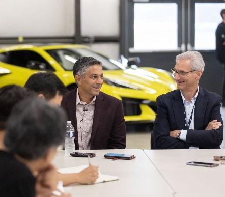 ▲ 27일(현지시간) 미국 MPG에서 기자간담회중인 로베르토 렘펠 한국GM 사장(오른쪽)과 실판 아민 GM 해외사업부문 사장. [GM 제공]