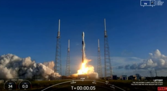 ▲다누리를 탑재한 스페이스X의 팰컨 9. [한국항공우주연구원 제공]