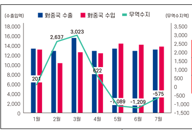디스플레이 생산 감소도 원인으로 지목 5월부터 3개월 간 이어진 대중(對中) 무역수지 적자는 '중간재 수입 증가'와 '공급망 재편', '역내포괄적경제동반자협정(RCEP) 발효' 때문이라는 분석이 제기됐다.
