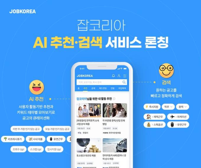 AI 추천 서비스는 AI 알고리즘을 기반으로 구직자 개인의 행동 패턴, 취향과 함께 최신 구직 트렌드 등 잡코리아 전체 이용자들의 관심사항까지 반영해 최적화된 추천 공고를 제안한다. 구체적으로 △내 활동 추천 △직무별 인기 공고 △복리후생으로 보는 공고 △급상승 공고 등 4가지로 구분해 다양한 정보를 제공한다.