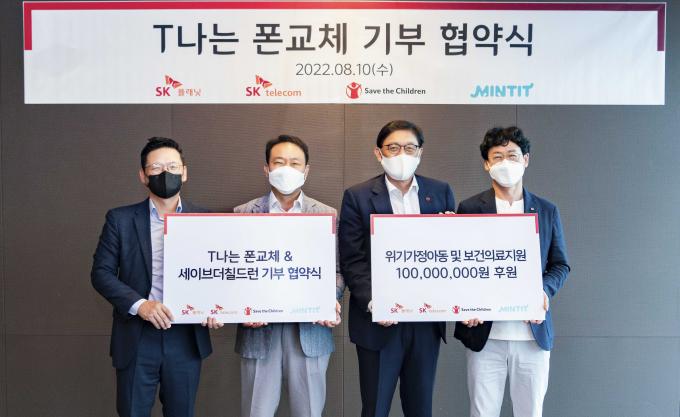 이를 위해 SK텔레콤과 SK플래닛, 민팃, 세이브더칠드런은 10일 'T나는 폰교체' 기부협약을 맺었다.