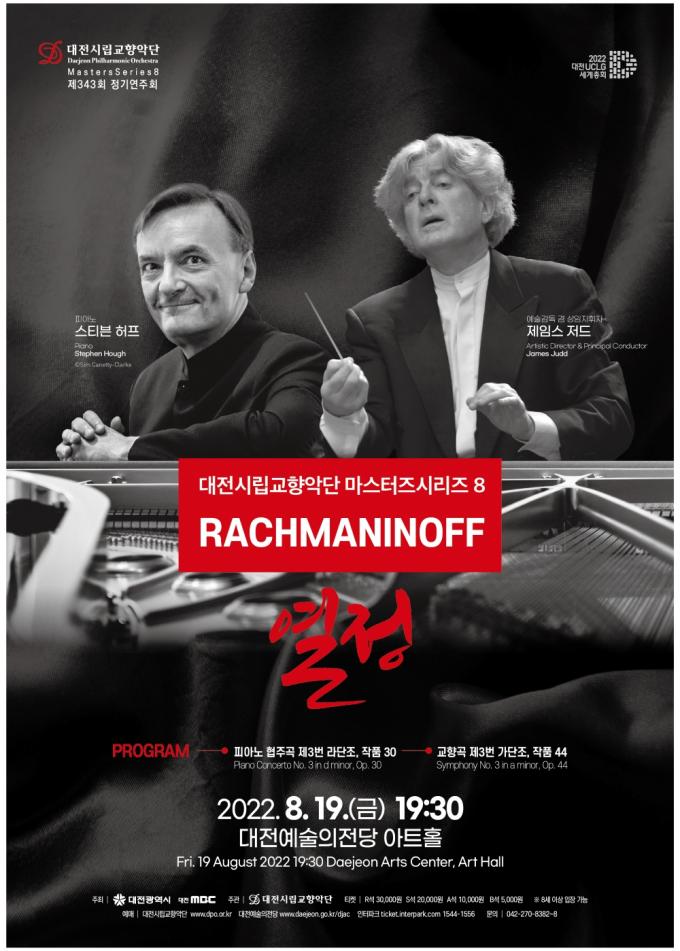 대전시립교향악단은 오는 19일 대전예술의전당 아트홀에서 제임스 저드 예술감독의 지휘로 연주자들에게 '피아니스트의 무덤'이라 불리는 라흐마니노프 피아노 협주곡 3번을 스티븐 허프의 협연으로 꾸민다. 후반부는 러시아적 서정이 가득한 라흐마니노프 교향곡 3번을 연주한다.