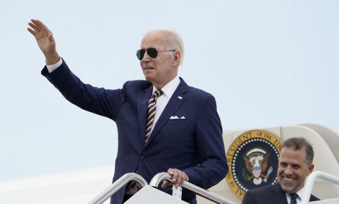 ▲ 조 바이든 미국 대통령이 지난 10일(현지시간) 메릴랜드주 앤드루스 공군기지에서 전용기에 탑승해 손을 흔들고 있다. [AP뉴시스]
