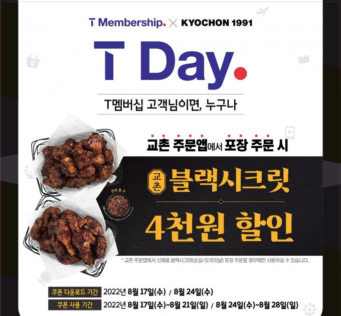 이번 이벤트는 신메뉴 출시 기념 및 교촌 주문앱을 이용하는 T멤버십 고객들을 위해 마련됐다. 오는 24일까지 교촌 주문앱에서 교촌블랙시크릿(오리지날·순살)을 포장 주문 시 4000원을 할인받을 수 있다.