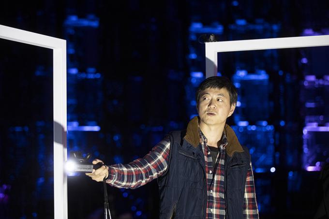 ▲문재인 전 대통령 아들 문준용 씨가 2020년 10월 22일 오후 인천 파라다이스시티에서 그림자와 증강현실을 이용한 자신의 작품을 시연하는 모습. [UPI뉴스 자료사진]