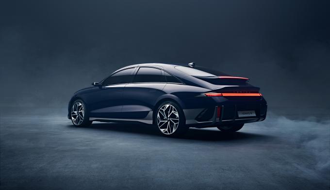 ▲현대차가 공개한 순수 전기차 '아이오닉 6'의 측면과 후면 모습. [현대차 제공]