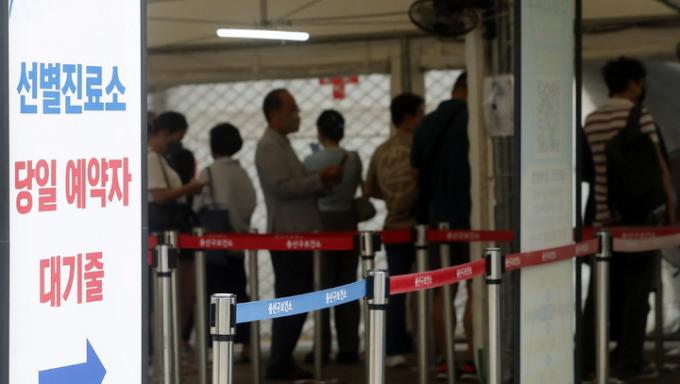 ▲ 24일 서울 용산구 보건소 선별진료소를 찾은 시민들이 코로나19 검사를 받기 위해 줄을 서고 있다. [뉴시스]