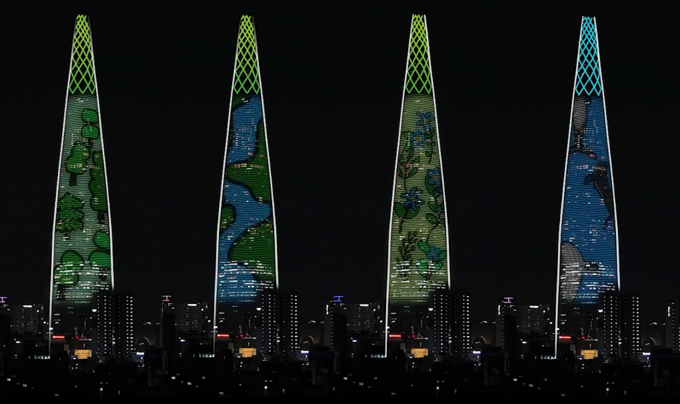 4월 환경파괴 위험성·동식물 보호 메시지 전달 롯데물산이 지난 24일 서울시청에서 열린 '서울특별시 좋은빛상' 시상식에서 롯데월드타워 미디어파사드 '지구의 날' 콘텐츠로 최우수상을 수상했다고 25일 밝혔다.