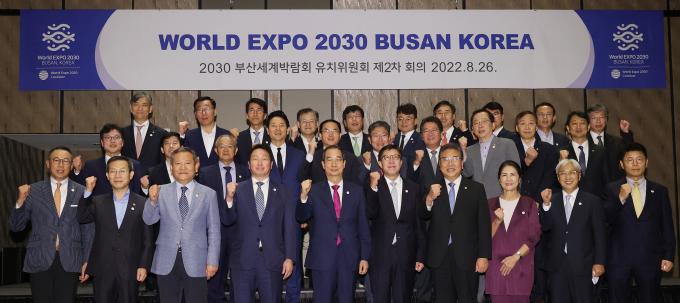 우리 정부와 기업들은 2030 부산엑스포 유치를 위해 지난 7월 8일 1차 회의를 시작으로 유치위원회를 본격 가동해 왔다. 한 총리와 최 회장을 공동 위원장으로 14개 정부 부처 장관과 박형준 부산시장, 이재용 삼성전자 부회장, 정의선 현대자동차 회장, 구광모 LG 회장, 신동빈 롯데그룹 회장, 손경식 CJ그룹 회장이 참여하고 있다.