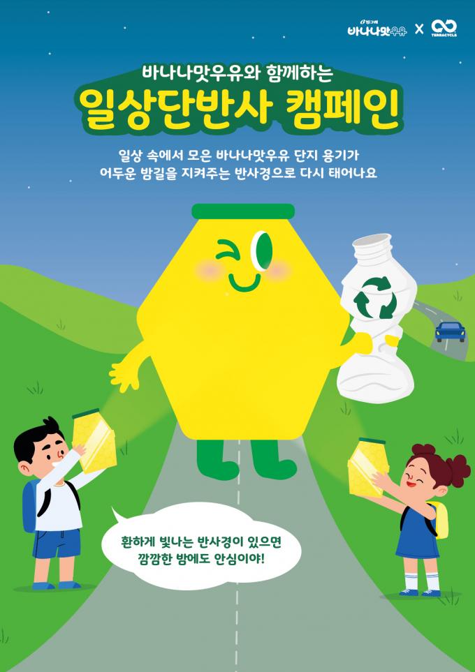 '일상단반사' 캠페인은 '일상 속에서 모은 바나나맛우유 단지 용기가 어두운 밤길을 지켜주는 반사경으로 다시 태어나요'라는 의미의 캠페인이다.