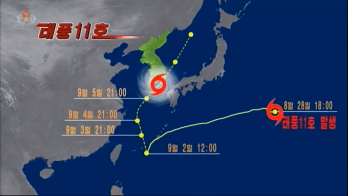 조선중앙TV는 4일 저녁 20시 방송을 통해 "태풍 11호가 현재 북쪽으로 이동하면서 오늘부터 우리나라(북한)에 간접 영향을 미치고 있다"며 "전반적 지역에서 구름이 많이 끼면서 비와 소낙비가 내렸다고 보도했다.