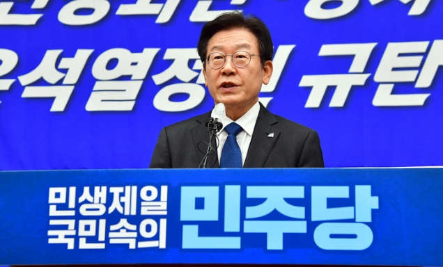 ▲ 더불어민주당 이재명 대표가 5일 서울 여의도 국회에서 열린 비상 의원총회에서 모두발언을 하고 있다. [뉴시스]