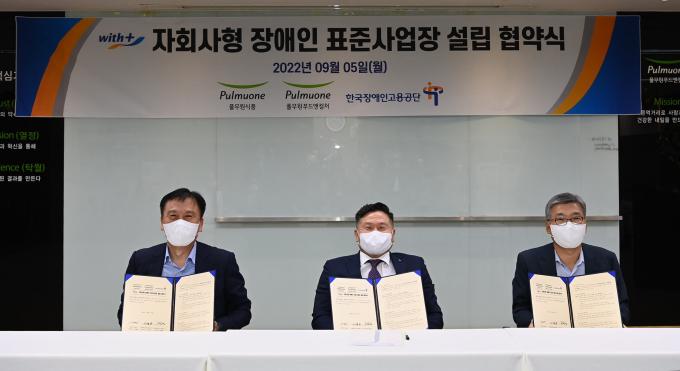 풀무원식품, 풀무원푸드앤컬처는 한국장애인고용공단과 지난 5일 장애인 일자리 창출을 위한 '자회사형 장애인 표준사업장' 설립 협약을 체결했다.