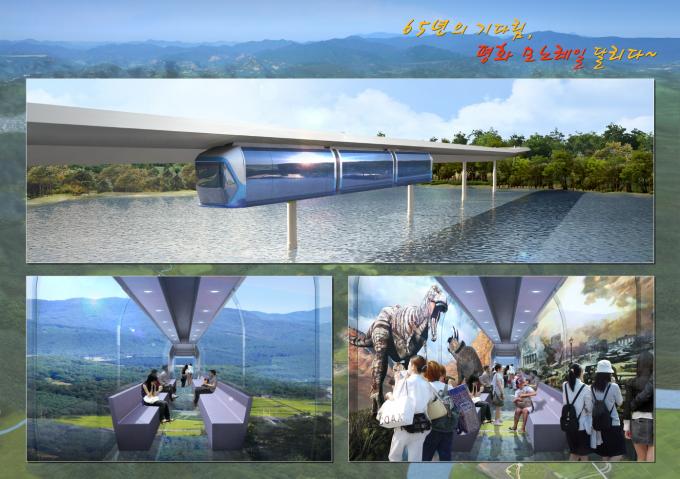 또 모노레일은 2단계로 판문점에서 개성까지 14㎞ 구간을 추가로 건설하고, 3단계로 개성에서 송악산까지 3㎞ 구간을 연결할 것이라고 했다.