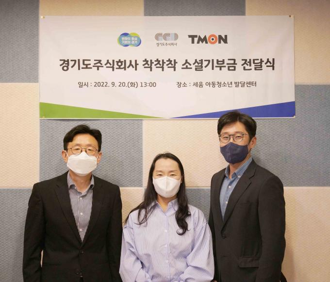 티몬 정해영 상생협력실장, 경기도주식회사 김종민 유통혁신팀 과장 등 관계자들은 지난 20일 '김포 세움아동청소년발달센터'를 방문해 사회공헌 캠페인 '소셜기부'의 일환으로 모금액 300만 원을 전했다. 이는 티몬과 경기도주식회사가 지난 8월 진행한 '착착착 판촉 기획전'에서 발생한 수익금의 일부다. 발달장애 아동들의 사회적응 및 치료와 교육을 위해 사용 예정이다.