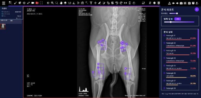 AI역량 총집합…질환탐지율 84%~97% 수준 AI(인공지능)가 반려동물의 엑스레이(X-ray) 사진을 분석해 수의사들을 돕는 시대가 됐다. 수의사들이 보다 정확하고 빠르게 영상 진단을 하도록 AI가 보조하는 기능이 국내 처음으로 상용화된 것.
