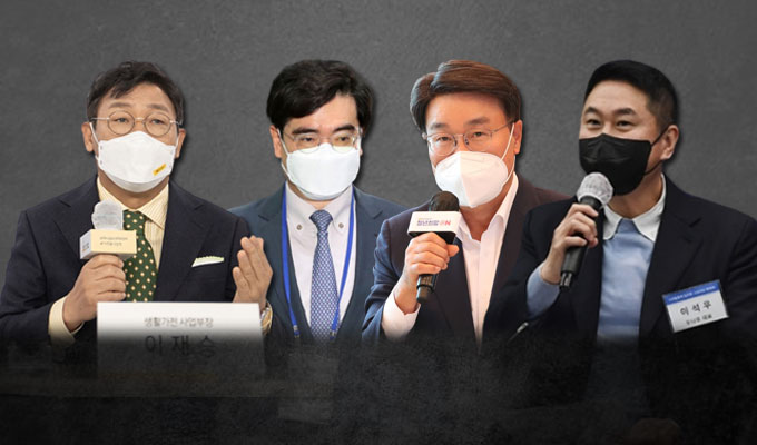 ▲ 이재승 삼성전자 사장(왼쪽부터), 공영운 현대차 사장, 최정우 포스코 회장, 이석우 두나무 사장 [UPI뉴스 자료사진]