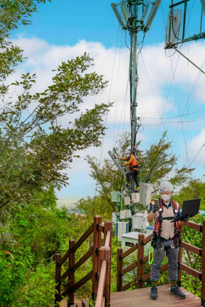 ▲ SK텔레콤이 온실가스 배출을 줄이고 넷제로(Net Zero)를 실현하기 위해 친환경 인프라 기술 육성에 나선다. 사진은 SK텔레콤 자회사 SK오엔에스 엔지니어들이 경기 파주시 산악지역에 설치된 중계기 장비를 점검하는 모습. [SK텔레콤 제공]