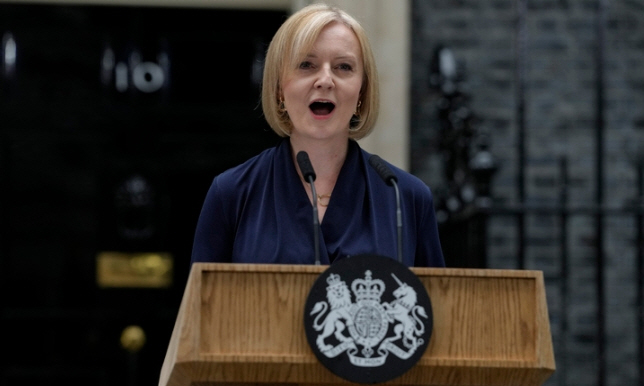 ▲ 리즈 트러스 영국 신임 총리가 대규모 감세 안을 발표하면서 영국 재정위기 우려가 불거져 글로벌 금융시장이 충격을 받았다. 지난 6일 런던 총리관저(다우닝가) 앞에서 취임 연설하는 트러스 총리. [AP뉴시스]