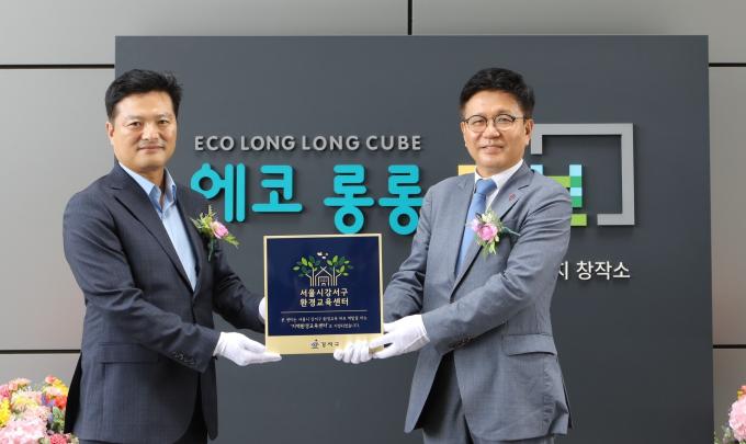 코오롱에 따르면 김태우 강서구청장이 지난 29일 서울 강서구 마곡에 위치한 코오롱 원앤온리 타워 내 에코 롱롱 큐브를 방문해 지역환경교육센터 현판을 전달하고, 강서구의 환경교육 활성화에 주도적 역할을 해줄 것을 당부했다.