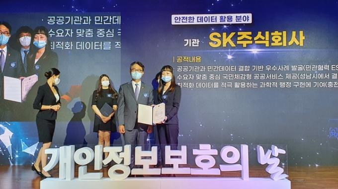 ▲ SK C&C가 2022년 가명정보 활용 우수사례·아이디어 경진대회에서 대상을 수상한 모습. [SK C&C 제공]