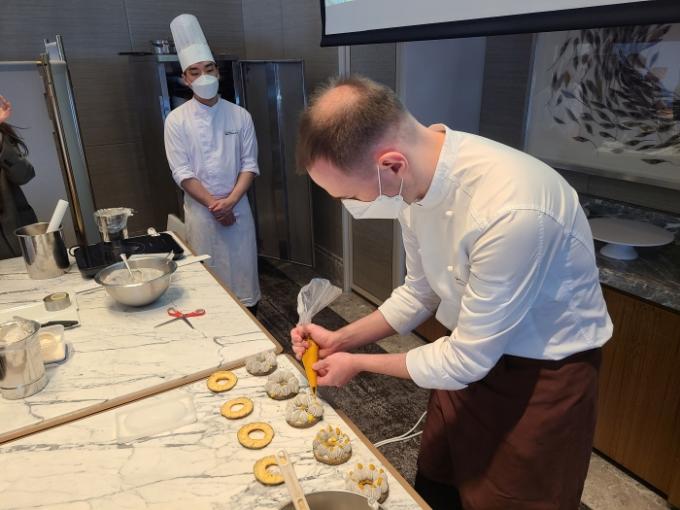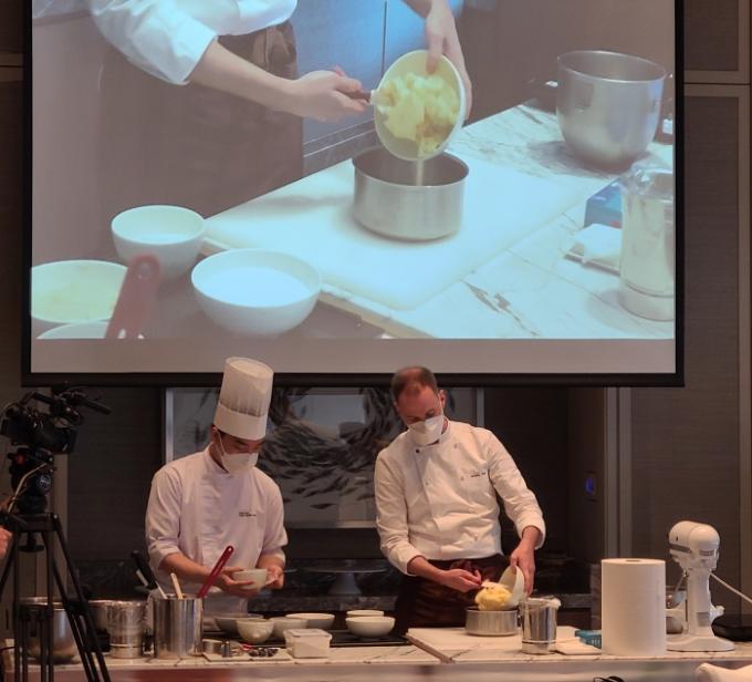 이날 현장에서는 프랑스 버터를 활용해 '참깨 망고 파리 브레스트', '쇼콜라 디아망', '녹차 피칸 피낭시에'를 만들었다.