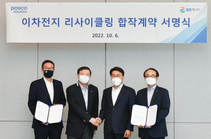 포스코홀딩스와 GS에너지는 6일 포스코센터에서 '포스코GS에코머티리얼즈' 설립을 위한 계약 서명식(JVA : Joint Venture Agreement)을 가졌다고 밝혔다.