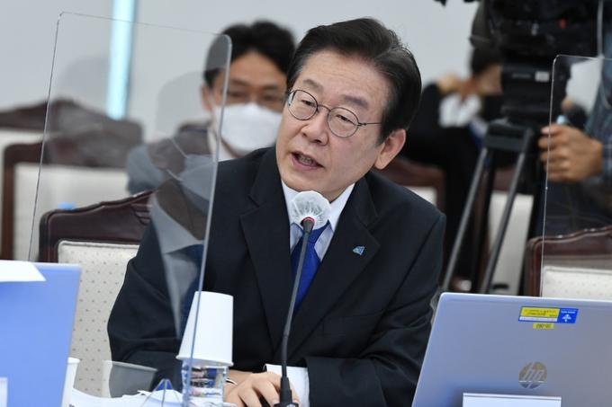 ▲ 더불어민주당 이재명 대표가 지난 6일 서울 용산구 합참 청사에서 열린 국회 국방위의 합동참모본부 국정감사에서 질의하고 있다. 이 대표는 한미일 군사 합동 훈련을 문제삼았다. [뉴시스]