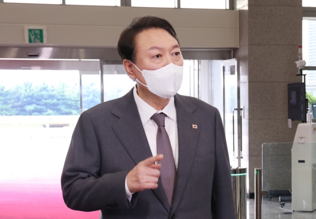 ▲ 윤석열 대통령이 지난 14일 서울 용산 대통령실 청사로 출근하며 취재진 질문에 답변하고 있다. [뉴시스]