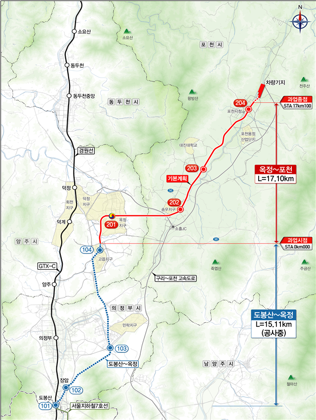 양주 고읍동에서 포천 군내면을 잇는 이 구간(17.1㎞)에는 정거장 4곳(양주 1, 포천 3), 차량기지 1곳이 설치된다.