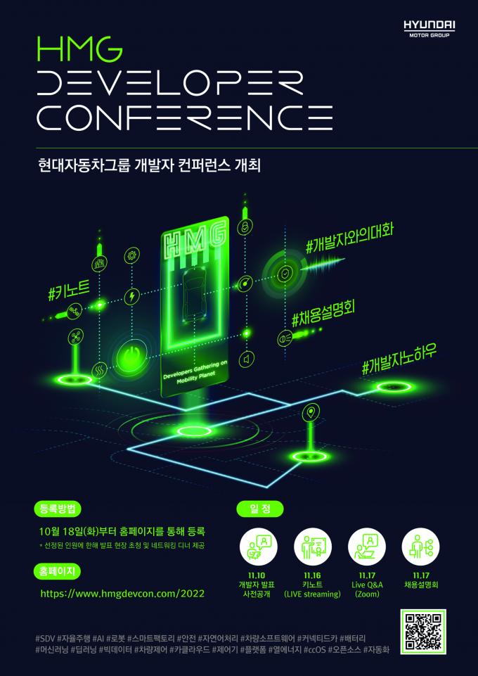 행사는 오프라인과 온라인 발표를 병행한 하이브리드 방식으로 진행된다. 참가 신청은 18일부터 홈페이지(www.hmgdevcon.com/2022)를 통해 받는다.