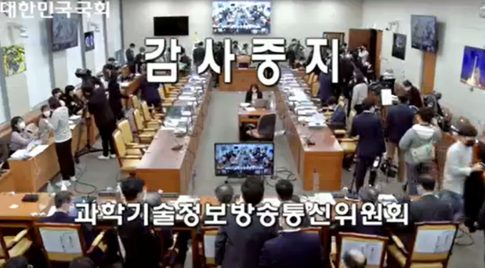 ▲과학기술정보방송통신위원회 국감이 13분만에 중단됐다. [국회의사중계시스템 캡처]