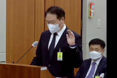 최 회장은 이날 오후 8시 30분이 넘어 국감에 출석한 것에 대해 "몇 달 전부터 예정된 일본 포럼이 있었다"며 "빨리 끝내고 출석했는데 심려 끼쳐 죄송하다"고 했다.