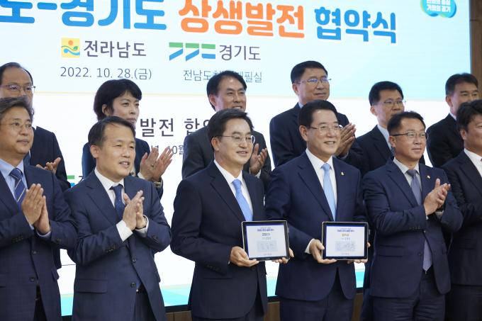 김동연 경기지사와 김영록 전남지사가 28일 전남도청에서 '전남·경기 상생발전 합약'을 체결하고 6개 과제에 합의, 좋은 지방시대와 새로운 대한민국의 실현을 위해 공동 노력하기로 했다.