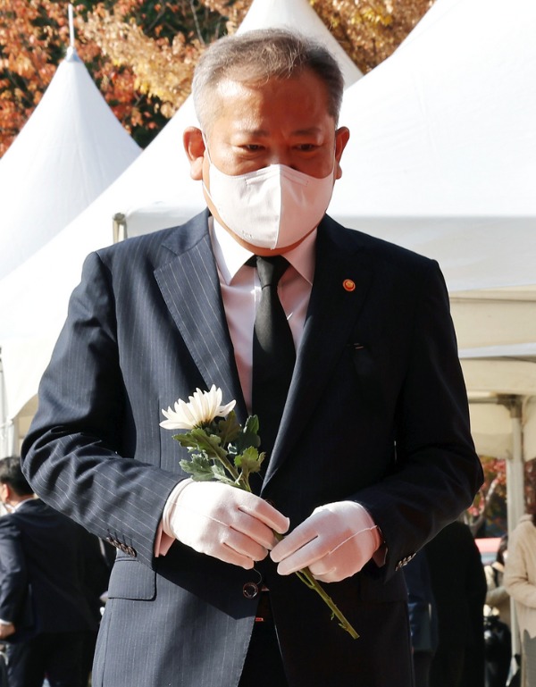 다만 정진석 비대위원장은 서울광장 합동분향소에서 조문을 마친 뒤 이 장관 발언에 대한 입장을 묻는 취재진에게 "지금은 추궁의 시간이 아닌 추모의 시간"이라고 답했다.