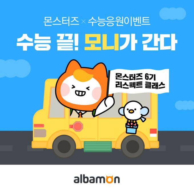 오는 9일까지 알바몬 앱으로 수험생을 응원하는 메시지를 남기면 그중 3개 학교를 선정해 몬스터즈와 노무사가 학교를 방문, '리스펙트 클래스'를 진행한다.