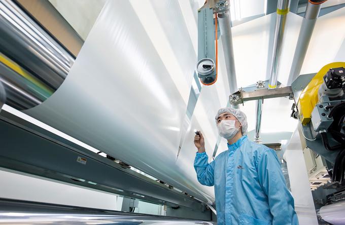 ▲ SK아이이테크놀로지 직원이 분리막을 살펴보고 있다. [SKIET 제공]