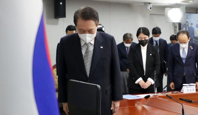 윤 대통령이 공식 회의에서 '국민'을 명시하며 "죄송하다"고 표현한 것은 이번이 처음이다.