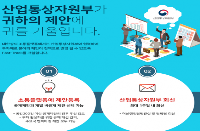 온라인 소통 플랫폼으로 제안한 의견은 대한상의가 채택, 정부에 건의할 경우 산업부에서 1주일 내에 검토의견을 대한상의에 전달하는 방식으로 진행된다.