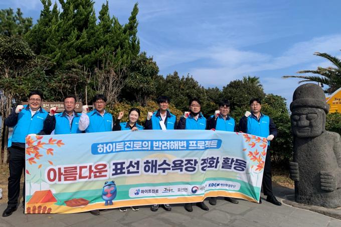 하이트진로 제주지점 임직원들은 표선해수욕장과 해안도로 일대의 쓰레기를 수거하는 활동을 진행했다. 이번 반려해변 환경 정화활동은 지난 6월과 9월에 이어 세 번째다.