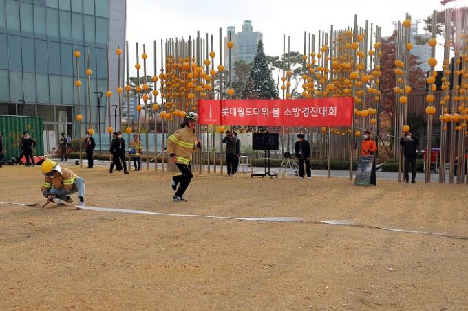 지난 2011년부터 진행한 소방경진대회는 안전한 롯데월드타워·몰을 만들기 위해 타워·몰 전 운영사가 모여 화재진화와 응급처치 방법을 익히고 안전 역량을 겨루는 대회다.