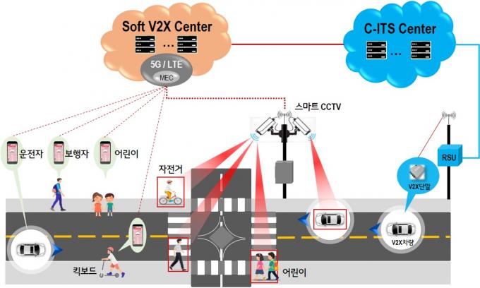 실증 사업은 모바일 앱 '교통안전 스마트 알리미'를 통해 보행자, 차량, 오토바이, 킥보드, 자전거 간 충돌위험을 미리 알려주는 방식으로 진행된다.